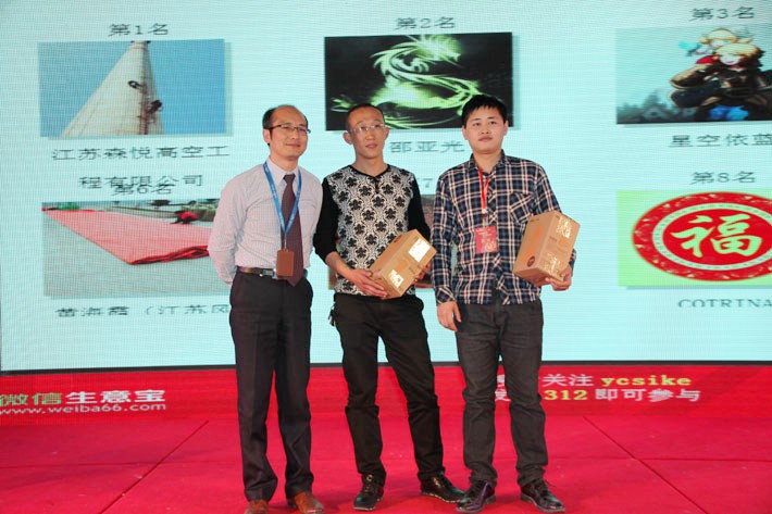 互動游戲—微信派紅包,企業(yè)家們積極參與,胡總與幸運客戶合影留念。